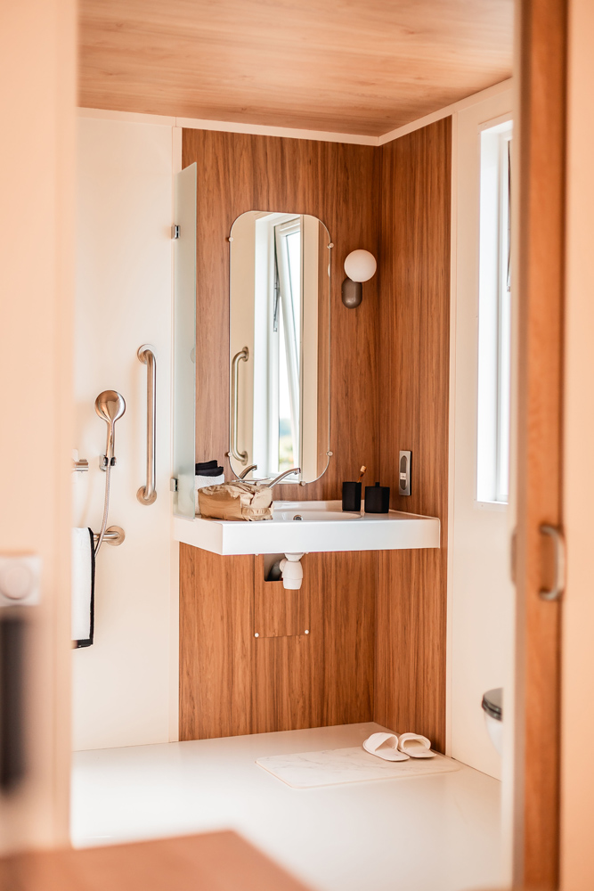 Beispiellose Geräumigkeit für das brandneue Mobilheim 1175 mit 3 Schlafzimmern! O'Hara setzt neue Maßstäbe mit einem 50 m² großen XXL-Grundriss, der speziell für Menschen mit eingeschränkter Mobilität konzipiert wurde. XXL-Duschraum, XXL-Wendebereiche, XXL-Türöffnungen von 83 cm, XXL-Hauptschlafzimmer. Maßgeschneiderter XXL-Komfort.