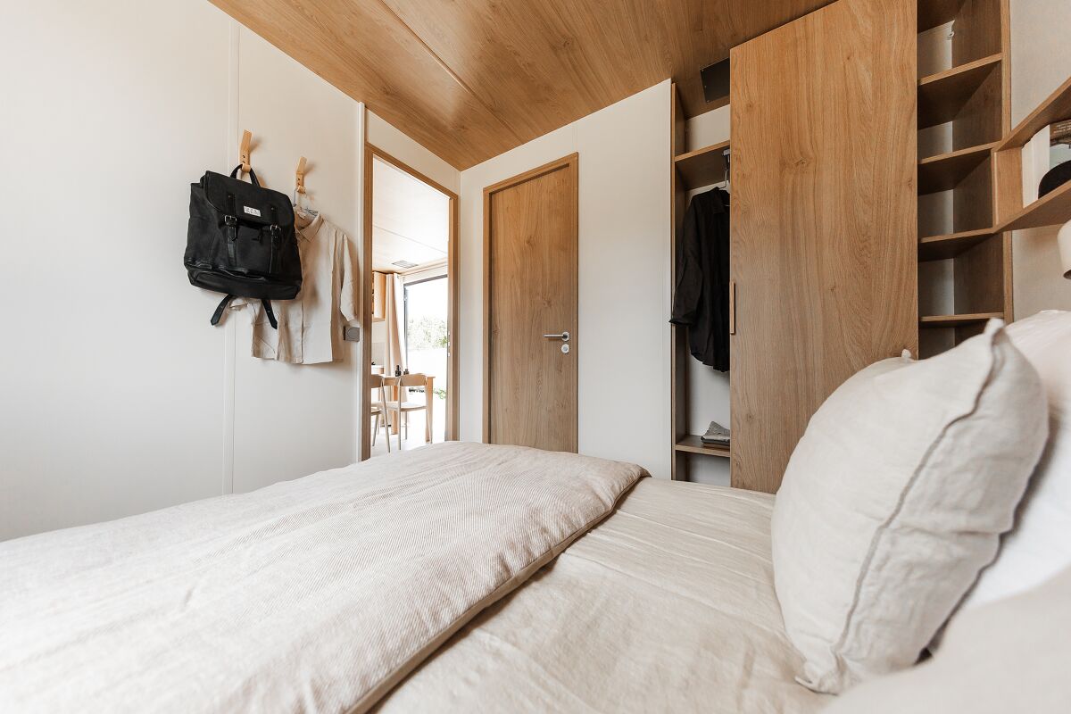 Sie erreichen die gartenseitige Terrasse des Modells 884-3 über die doppelte Fenstertüren auf der Rückseite. Sie werden das Elternschlafzimmer mit direktem Zugang zum Easy-Clean-Bad zu schätzen wissen. In diesem großen Spitzenmodell finden alle Ihre Urlauber bequem Platz.