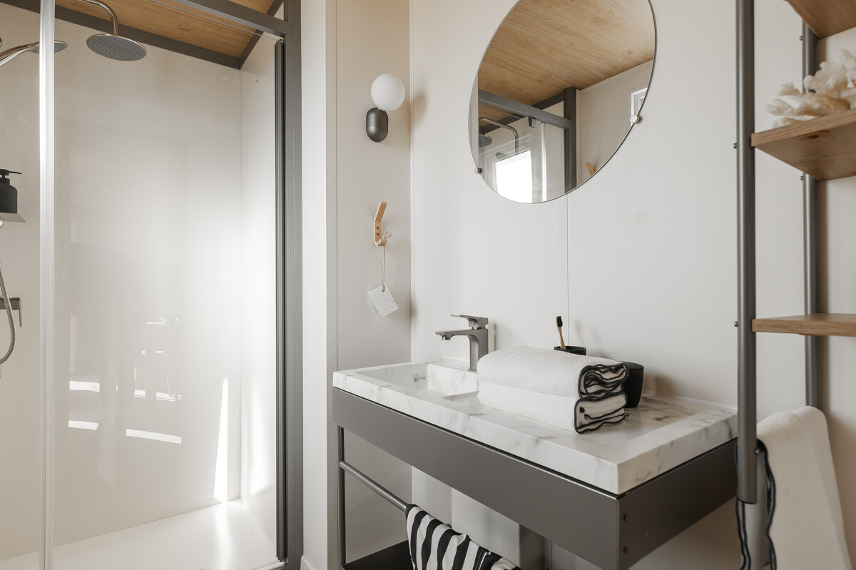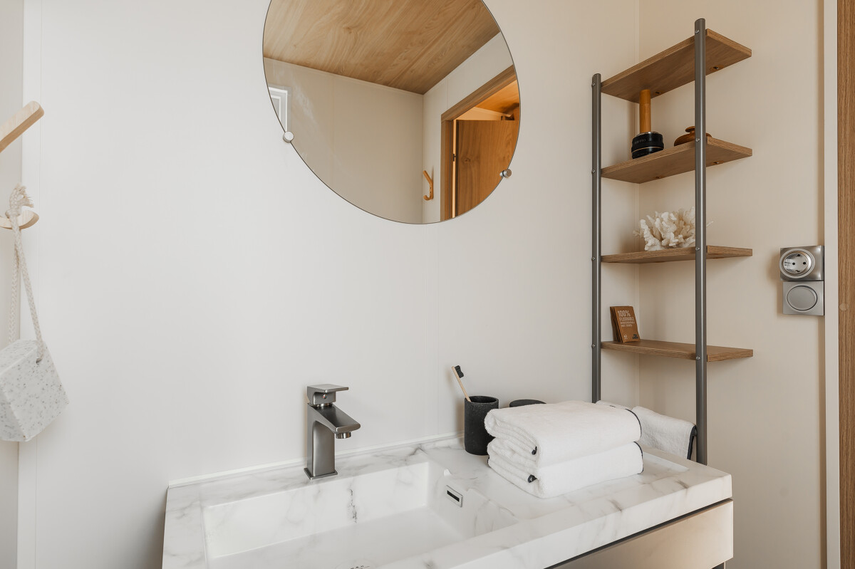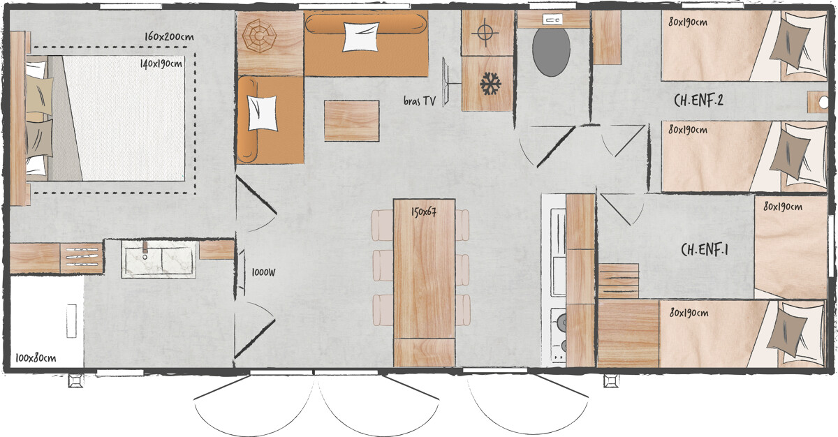 Das Modell 884-3 ist das ultrahelle 3-Schlafzimmer-Modell. Es profitiert von einer angrenzenden Küche mit direktem Zugang zur Terrasse. Sie werden seinen Stehtisch zu schätzen wissen, wo Sie in aller Gemütlichkeit zu Mittag essen oder Mahlzeiten zubereiten können.