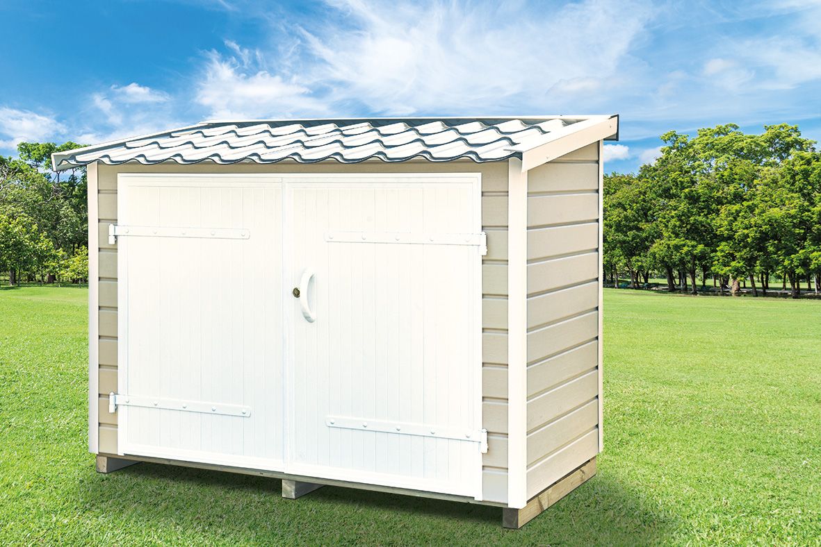 Schuppen DÜNE PVC 2m2: L. 200 x P. 95 x H. 156/138 cm