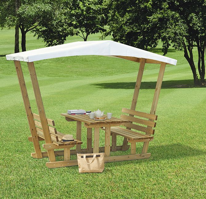 4-6 Sitzplätze - Latten 116 x 42 mm - Loch für einen Sonnenschirm.