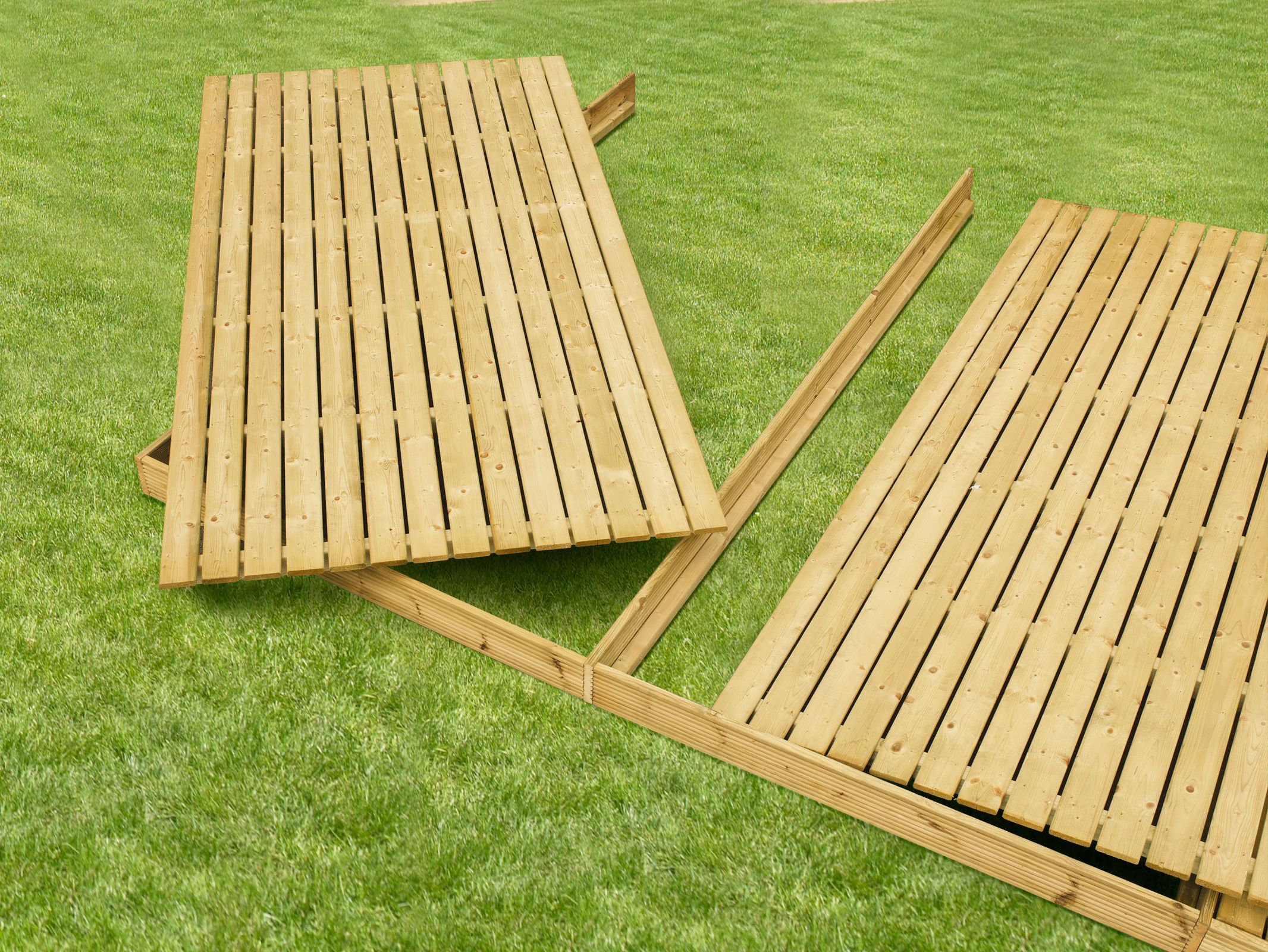 Kann lose oder vormontiert geliefert werden. Die Holzunterkonstuktionen verkleiden und schützen die Unterseite von Terrassen und Mobilheimen. Ästhetisch ansprechend und sicher für Kinder!