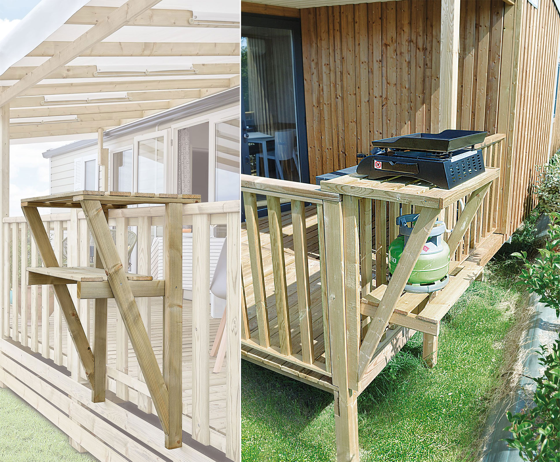 CASTEL 6.00 x 2.53 m - Optional mit 2-stufiger Treppe 100 cm & Unterbau für Mobilheim