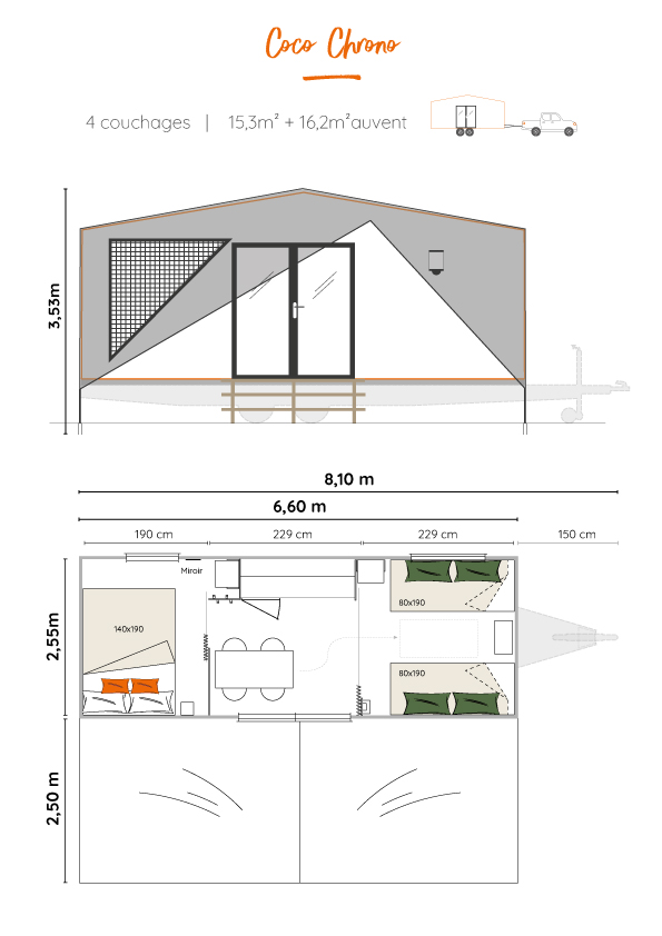 Coco ist eine besonders attraktive und neue Art zu campen, die Platz für bis zu 4 Personen bietet.