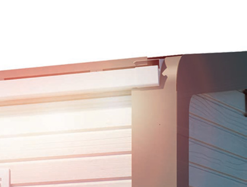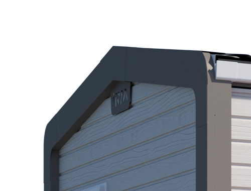 Giebel, Vorder- und Rückfassaden, jede Kante profitiert von der neuen Design Signatur. Der mokkafarbene Rahmen mit dem gleichen Querschnitt für jedes Modell harmoniert mit allen neuen MODUL'HOMES im Mietsortiment. Die in Frankreich hergestellten neuen Fassadenplatten Clay, Chalk oder Havanna sind zu 100 % recycelbar.