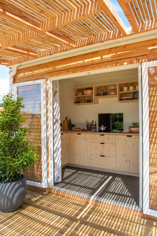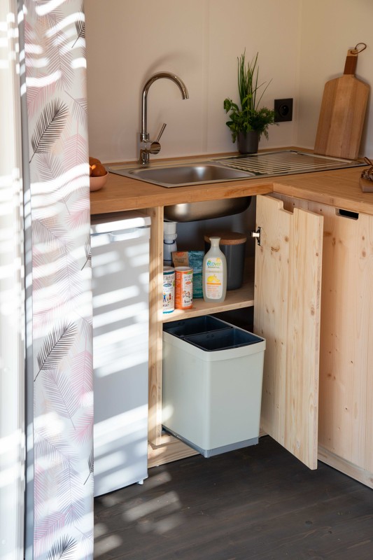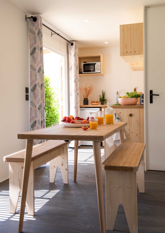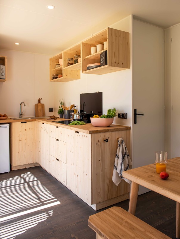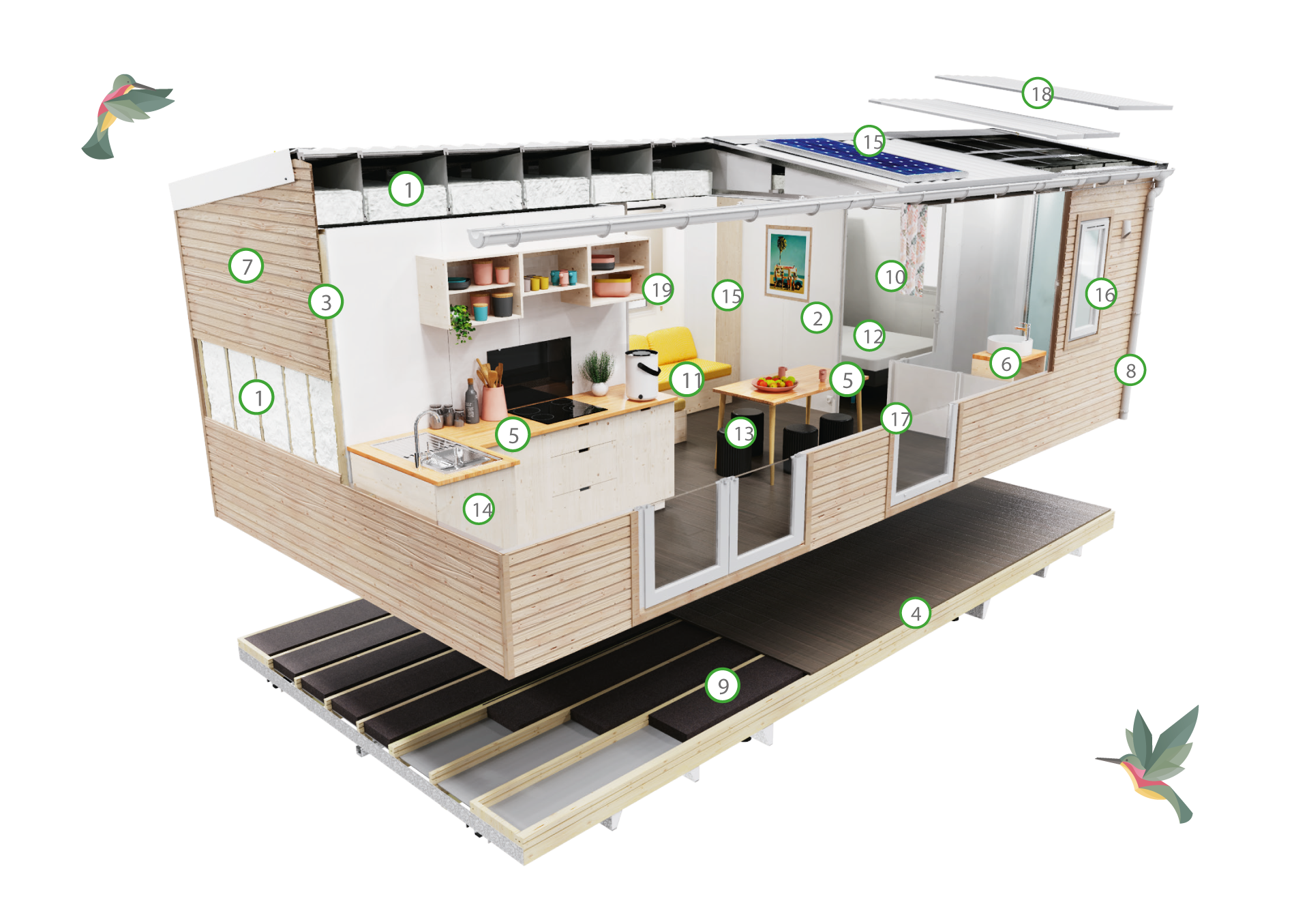 - Bodenplatte und Möbel aus stabilem Holz mit dreifacher Stärke und Schutz durch biobasiertes Ö