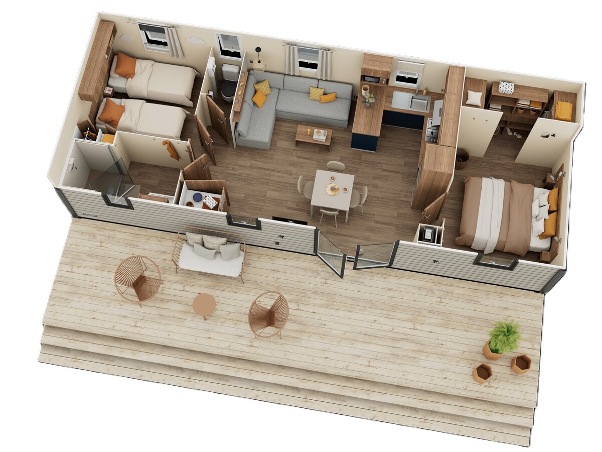 In diesem Modell mit allen seinen Vorzügen können Sie sich bequem über eine längere Zeit des Jahres einrichten und darin entfalten, insbesondere mit seinem Hauptschlafzimmer, seinem großen offenen Ankleideraum und seiner sehr geräumigen Küche mit Einrichtung.