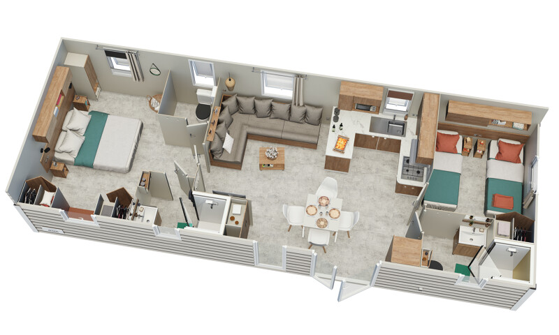 Wählen Sie Ihre liebste Jahreszeit, um dieses großzügige und elegante Modell, ebenso wie eine wunderschöne Jasminblüte, zu genießen, denn es bietet einen sehr hellen Wohnraum und eine sehr geräumige Eltern-Suite, mit dem Komfort wie eines Ferien-Bungalows.