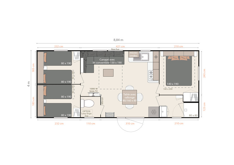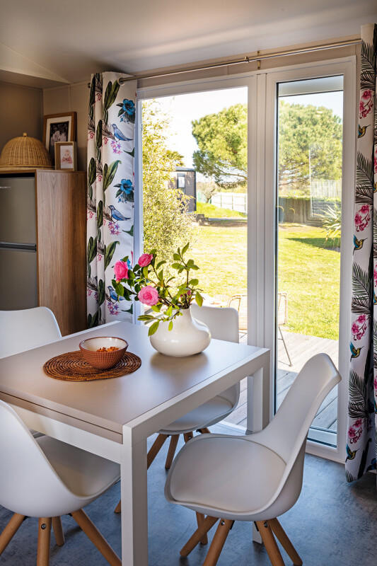 Auch Sie können dieses Mobilheim ganz nach Ihren Belieben zu jeder Jahreszeit genießen. Sie können sogar bis zu 8 Personen darin beherbergen und in seinem hellen Essbereich zum Essen einladen.