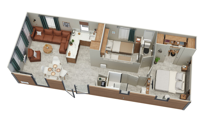 Sein Name ist ein schönes Versprechen, das dieses Modell mit seiner großzügigen Raumaufteilung, seinem sehr hohen Niveau an Komfort und seinen vielen Öffnungen nach außen, durch die Sie mitten in das Gefühl des Sommers eintauchen können, wie in einen Traum, der wahr geworden ist, ohne Weiteres zu halten vermag.
