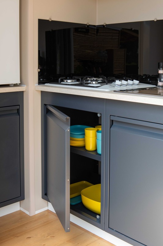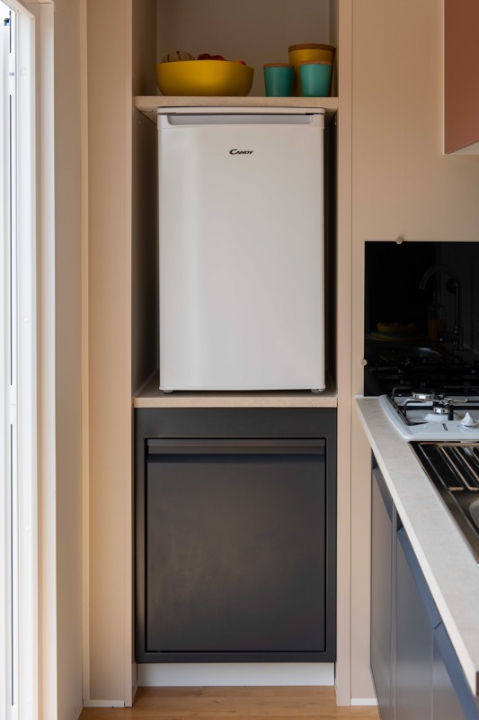 - Kühlschrank auf Höhe über der Arbeitsplatte