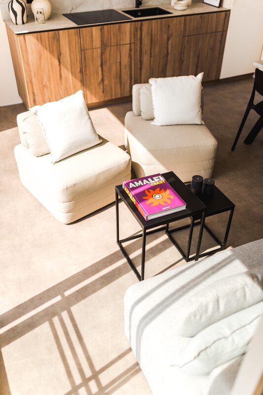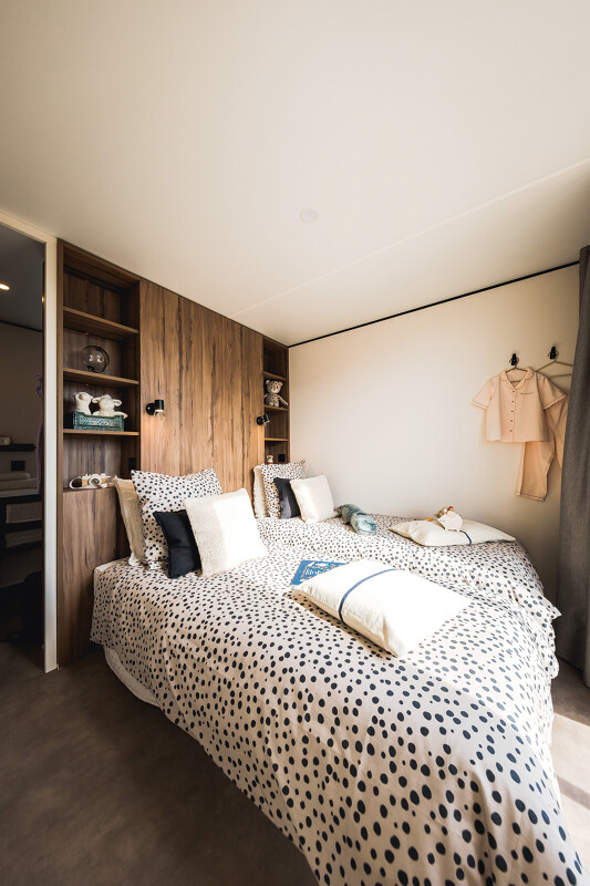 Eine Oase der Ruhe für große Familien, die sich gerne treffen, aber auch Raum für jeden haben möchten. Die Elternsuite und die Kinder-/Gästezimmer sind geschickt aufgeteilt, sodass die Privatsphäre gewahrt bleibt. Von der Mastersuite aus gelangt man über die zweiflügelige Fensterfront direkt auf die Terrasse, ohne den Wohnraum durchqueren zu müssen.
