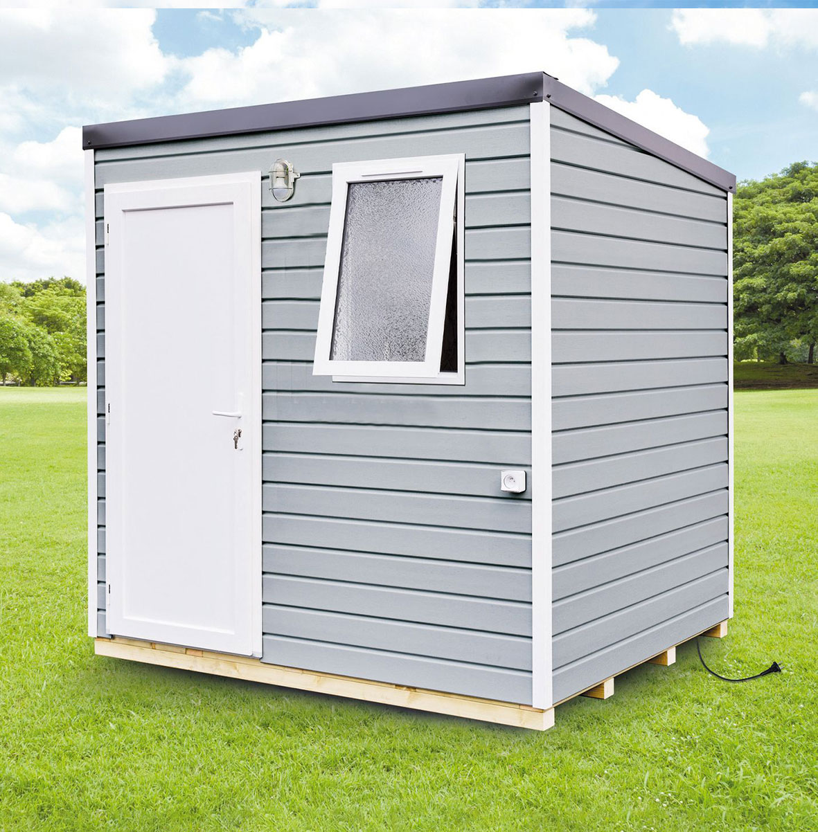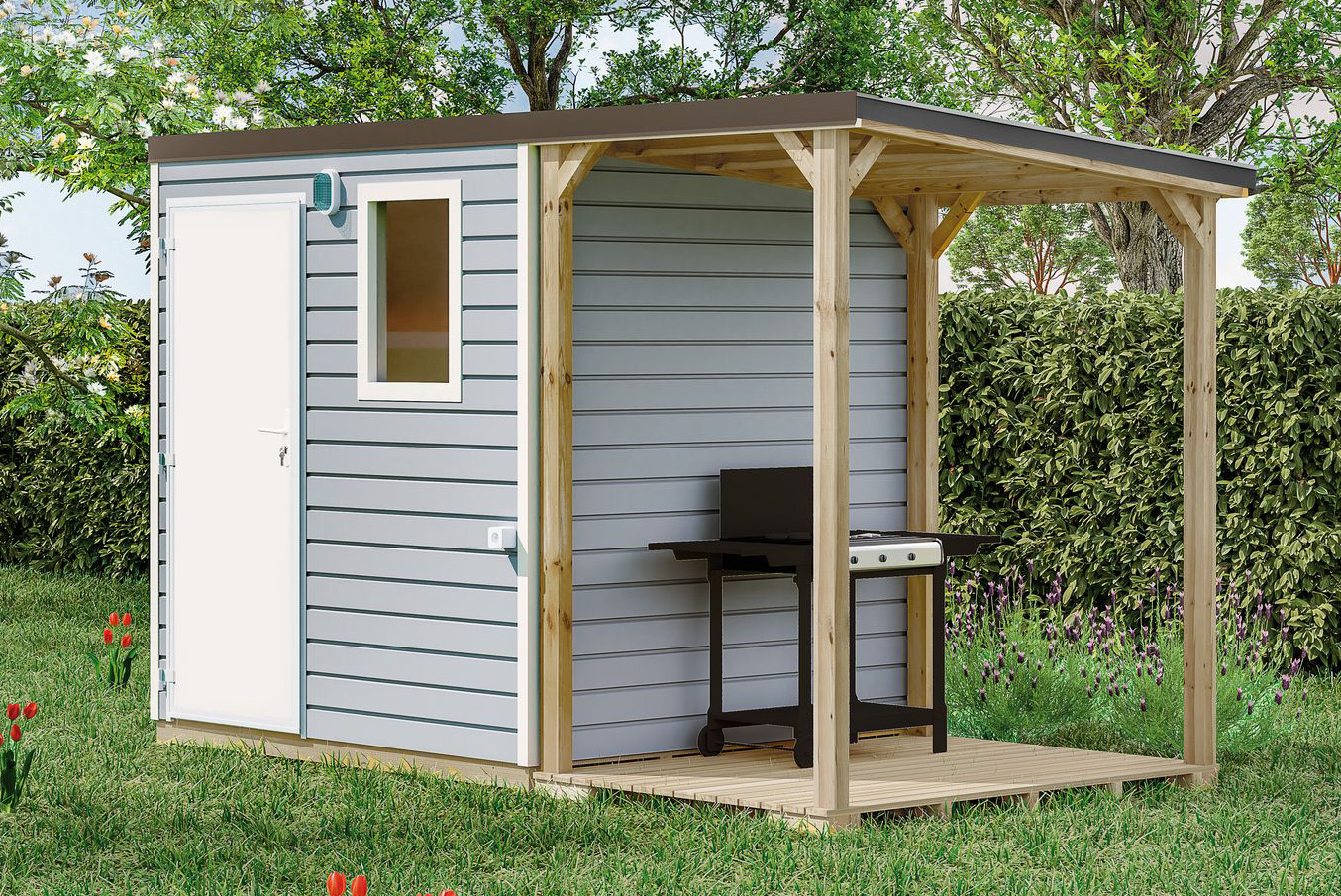 Die Gartenhäuser aus PVC und Holz werden auf Sparren aufgebaut: Sie sind leicht zu montieren und durch den Boden aus Agglo (Marinequialität) optimal vom Grund isoliert.