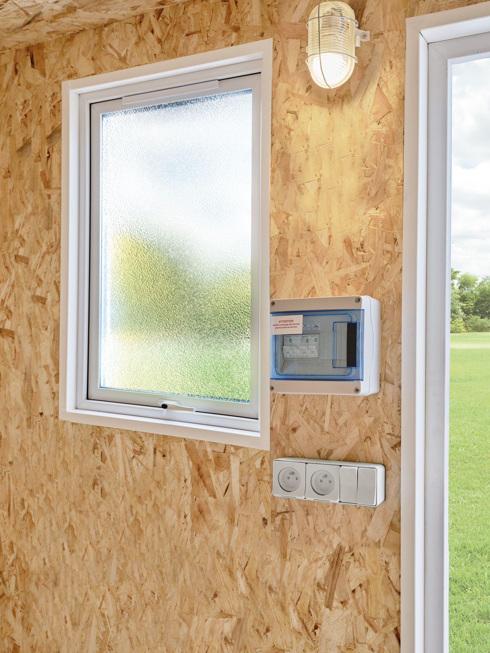 Die PVC-Hütte mit Satteldach gibt es in den Größen 4 m² und 6 m² mit folgender Ausstattung: