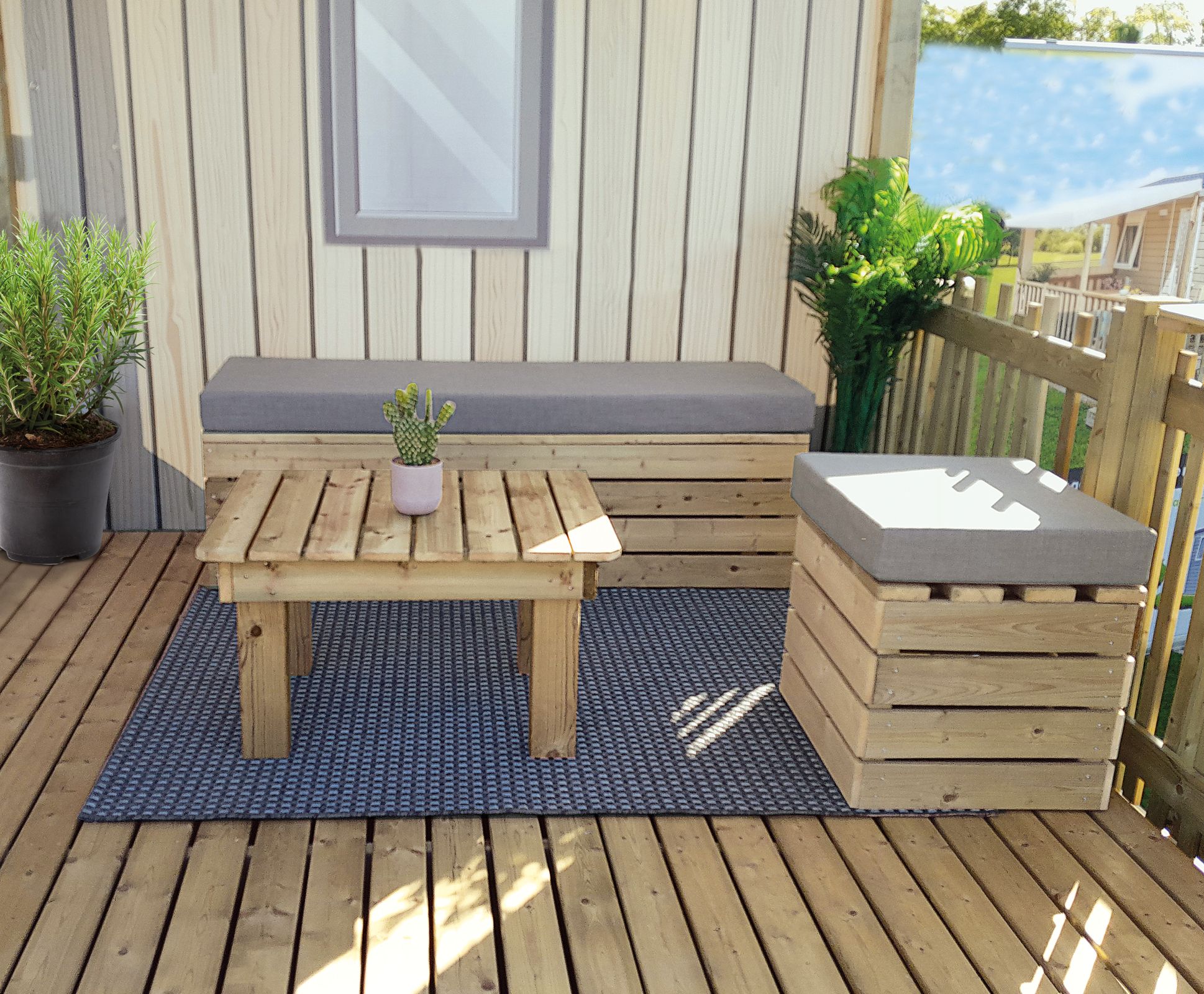 Sitzbank L 163 x B 50 x H45 cm - Tisch L 80 x B 60 x H 45 cm - Pouf L 50 x B 50 x H 45 cm